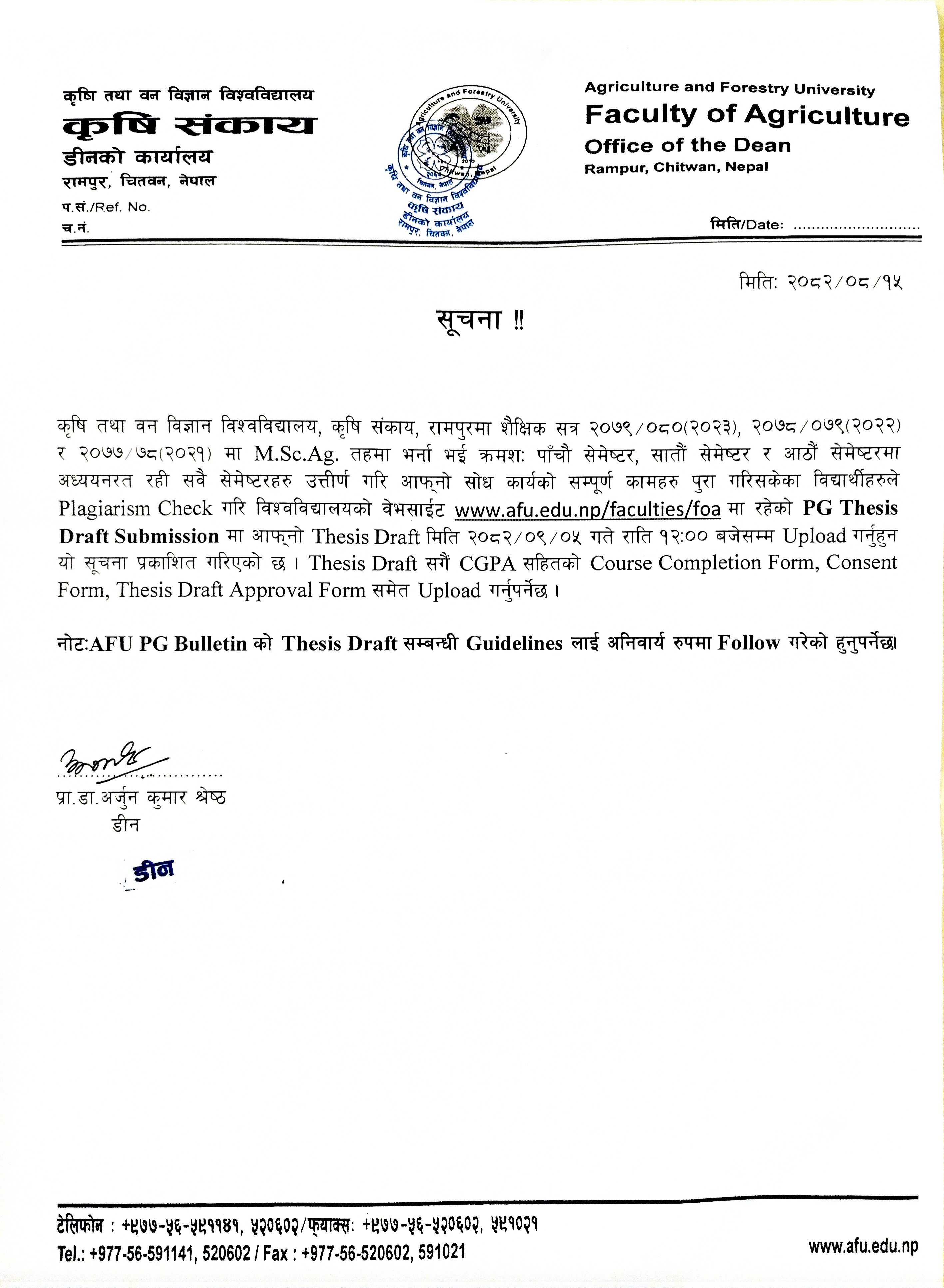 FOA - M.Sc. Agriculture Thesis Draft Submission Upload Notice