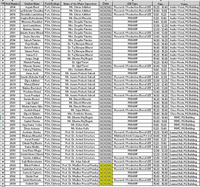 FoA - Presentation Schedule of LEE Presentation of Academic session 2077/78