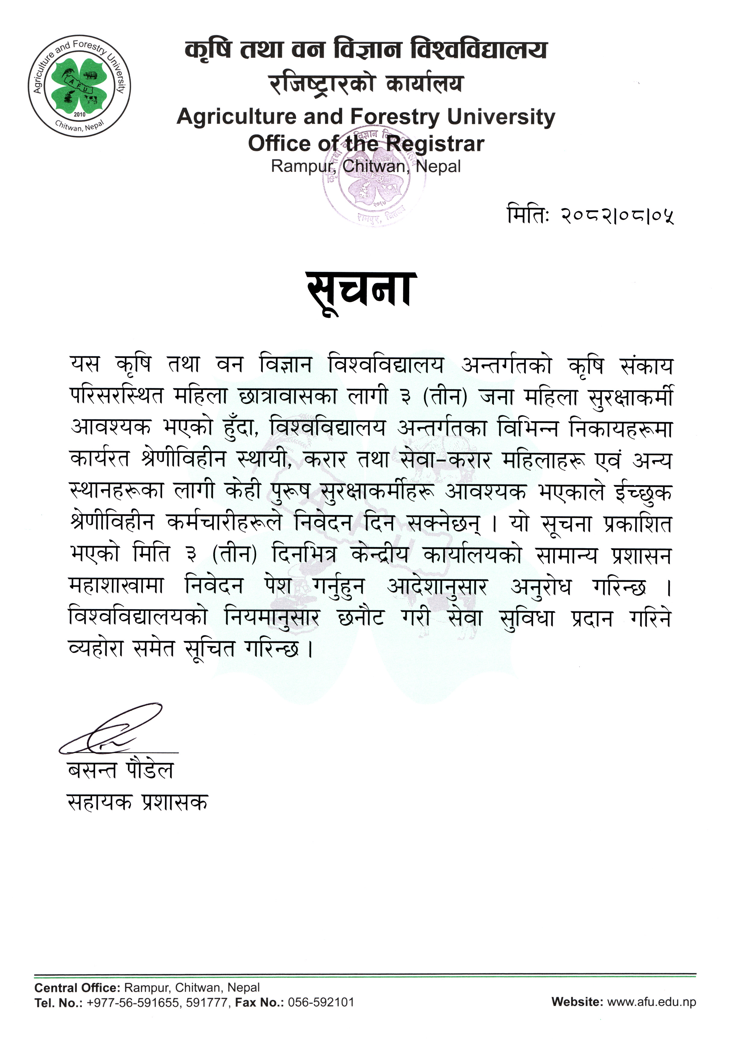 B.V.Sc & A.H. कार्यक्रममा FDF र B.Sc. Fisheries कार्यक्रममा रिक्त रहेका सिटहरुमा भर्ना सम्बन्धी सूचना
