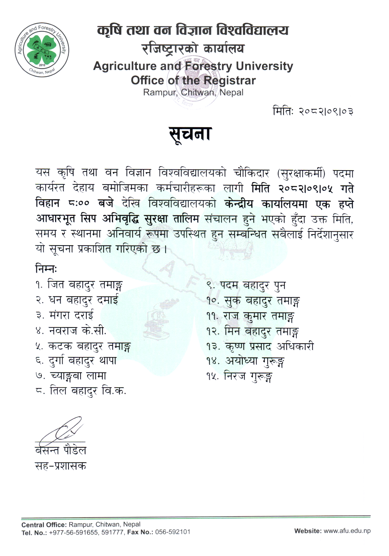 Admission Notice UDF 4th List M.Sc. Forestry 2082