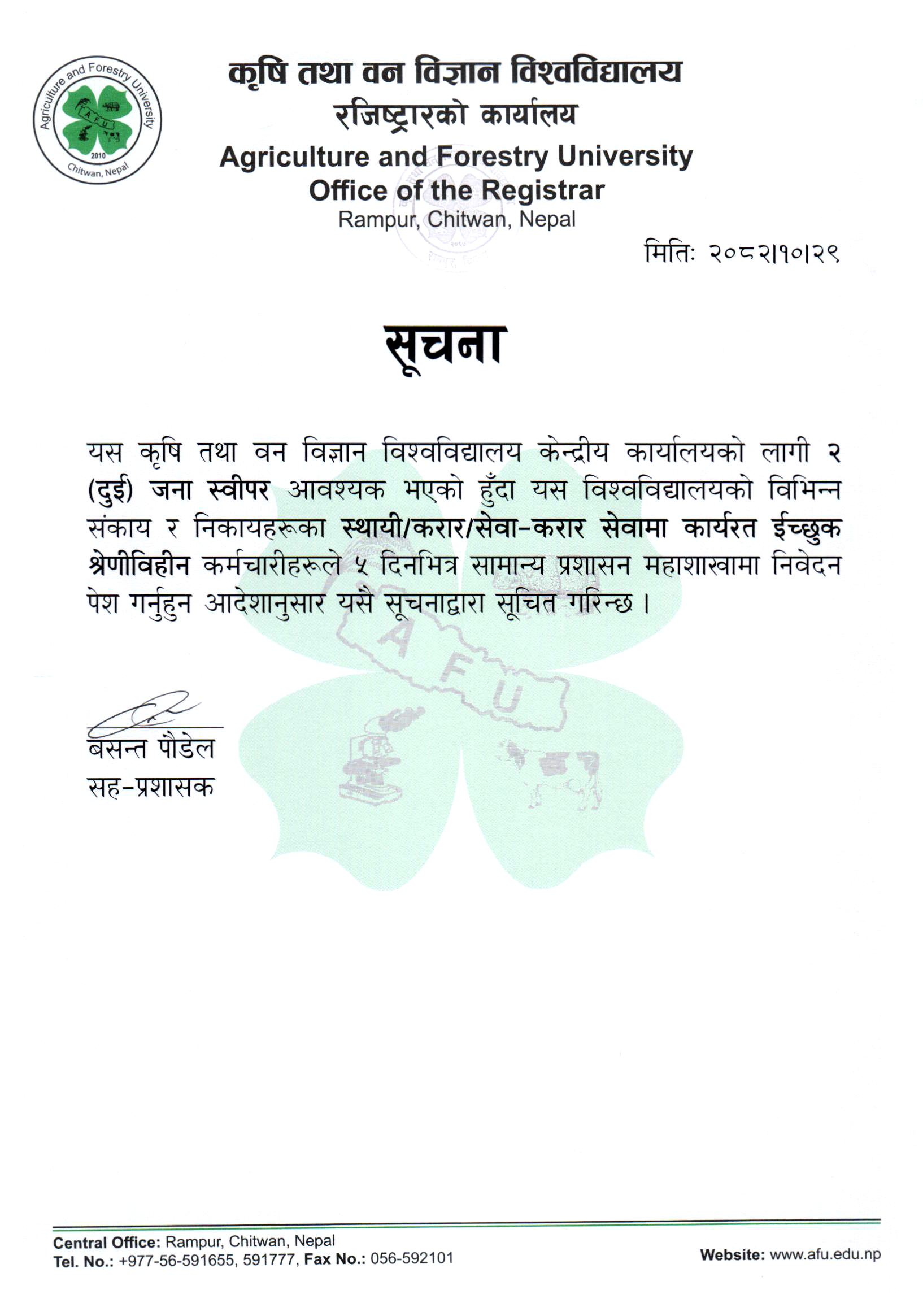 Notice for LEE Management System Registration (2078/2079 B.Sc. Ag Batch)